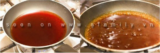 Trong khi chiên củ sen, bạn chế biến phần nước sốt bằng cách cho tất cả các nguyên liệu của phần này vào chảo, đun với lửa vừa đến khi sốt sệt lại thì bạn nêm nếm lại cho vừa miệng và tắt bếp, để riêng.