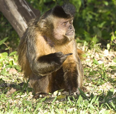 Một con khỉ nâu capuchin dường như đang ra dấu tay thô lỗ ở Pantanal, Brazil.