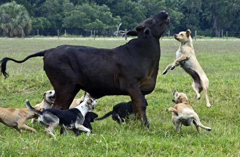 Đàn chó lùa gia súc về tranh trại ở miền trung Florida, Mỹ.