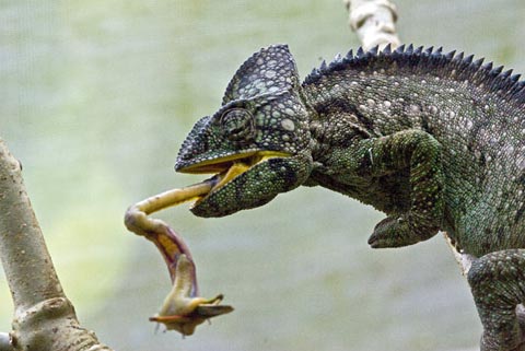 Tắc kè hoa thè cái lưỡi dài ngoằng của nó bắt mồi.